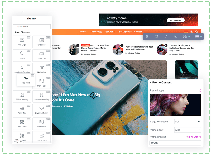 Launch your magazine or blog effortlessly with Newsfy. Enjoy unlimited access to intuitive tools that help bring your creative ideas to life.